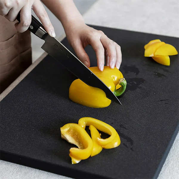 Préserve le tranchant des couteaux : sa surface en caoutchouc synthétique offre une sensation de coupe douce, proche du bois, qui limite l’usure des lames.